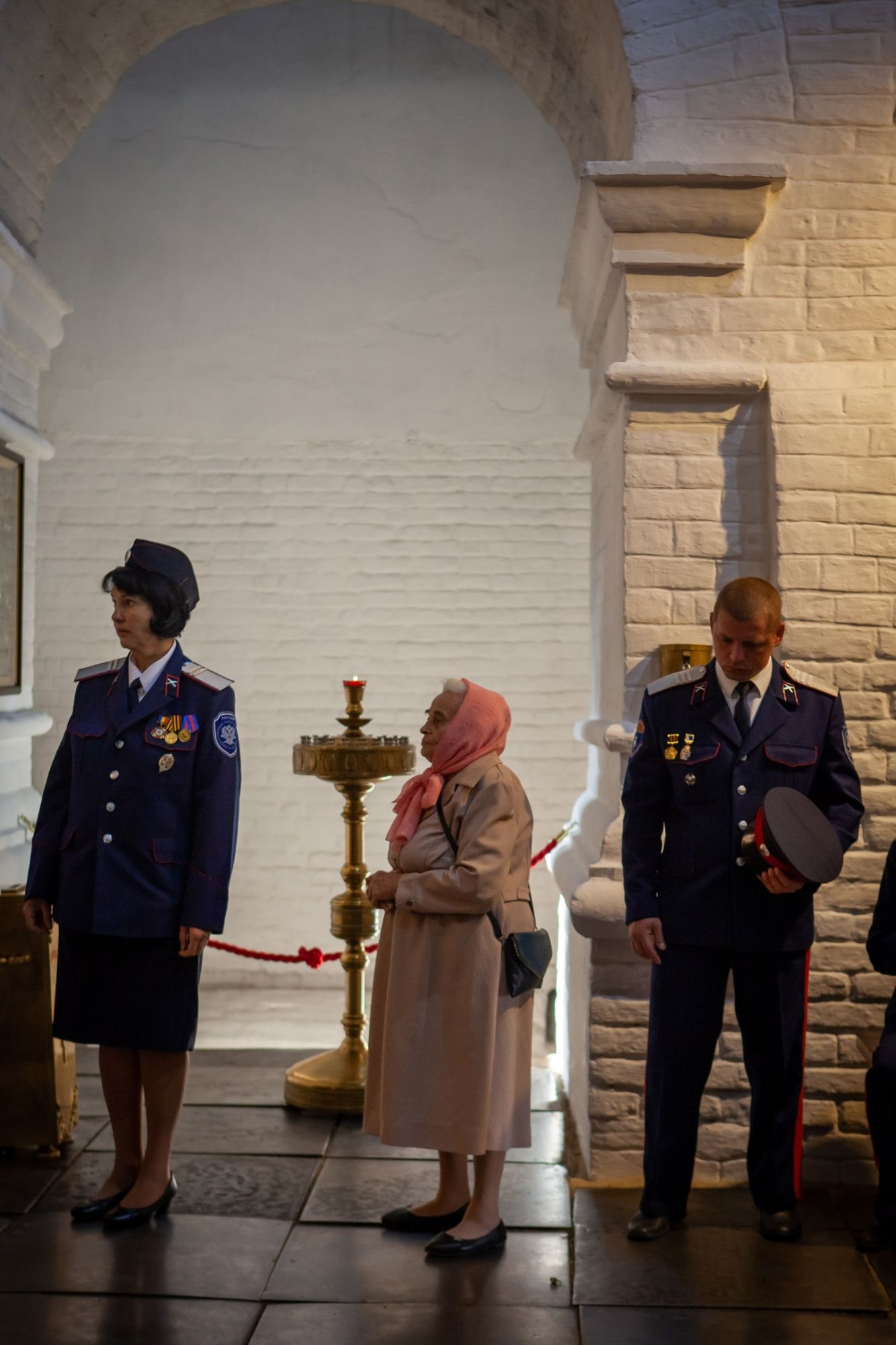 По окончании Божественной литургии, состоялись панихида и церемония перенесения останков генералов героев наполеоновских войн и Отечественной войны 1812 года на вечное упокоение в крипту Воскресенского войскового собора станицы Старочеркасской.
