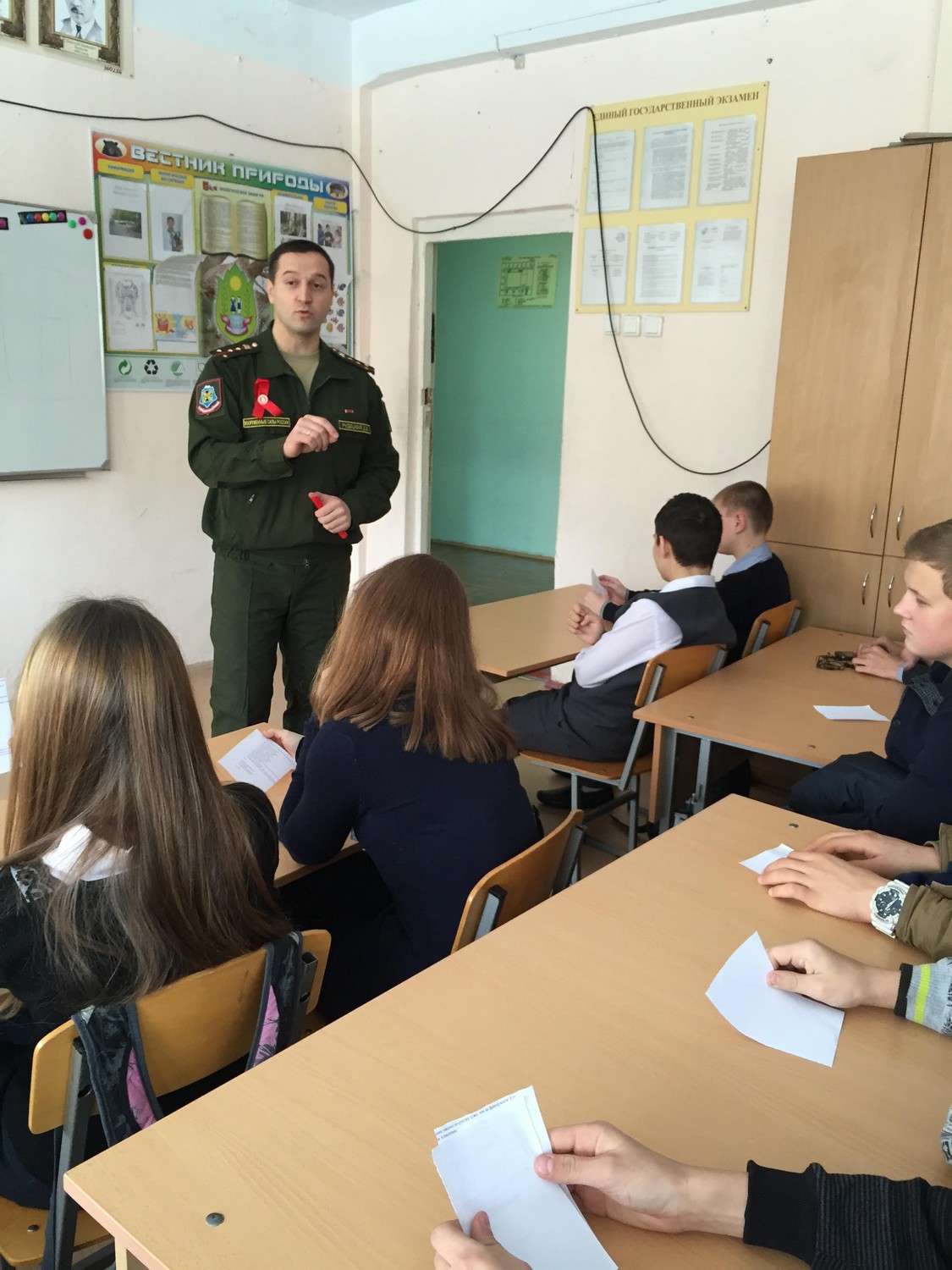 9 декабря 2014 года в школе №58 г. Ростова-на-Дону продолжились беседы, посвященные проблеме СПИДа, в которых принял участие заместитель командира батальона капитан Рудецкий Д.В.