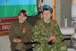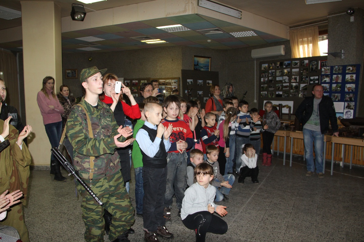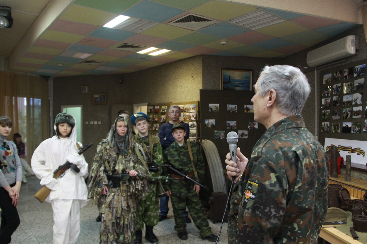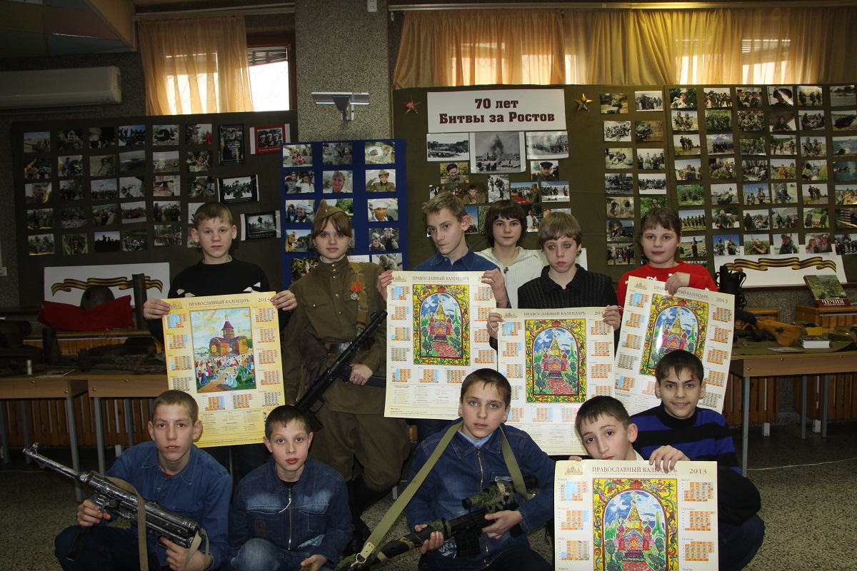 Председатель Ростовского духовно-патриотического центра Святого Георгия Победоносца Виктор Чуцков выступил с авторской песенно-поэтической программой и провёл для детей урок мужества, на котором рассказал о важнейших событиях военной истории России и о службе в современной армии.