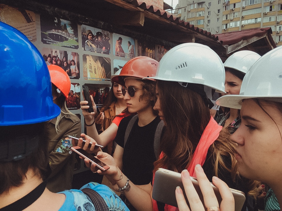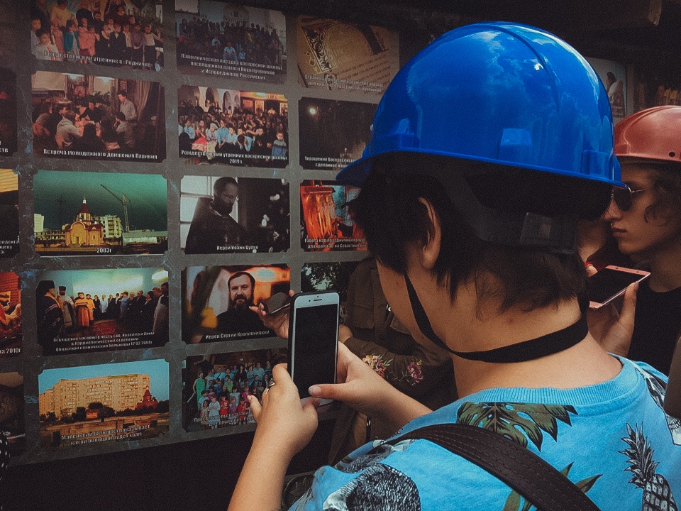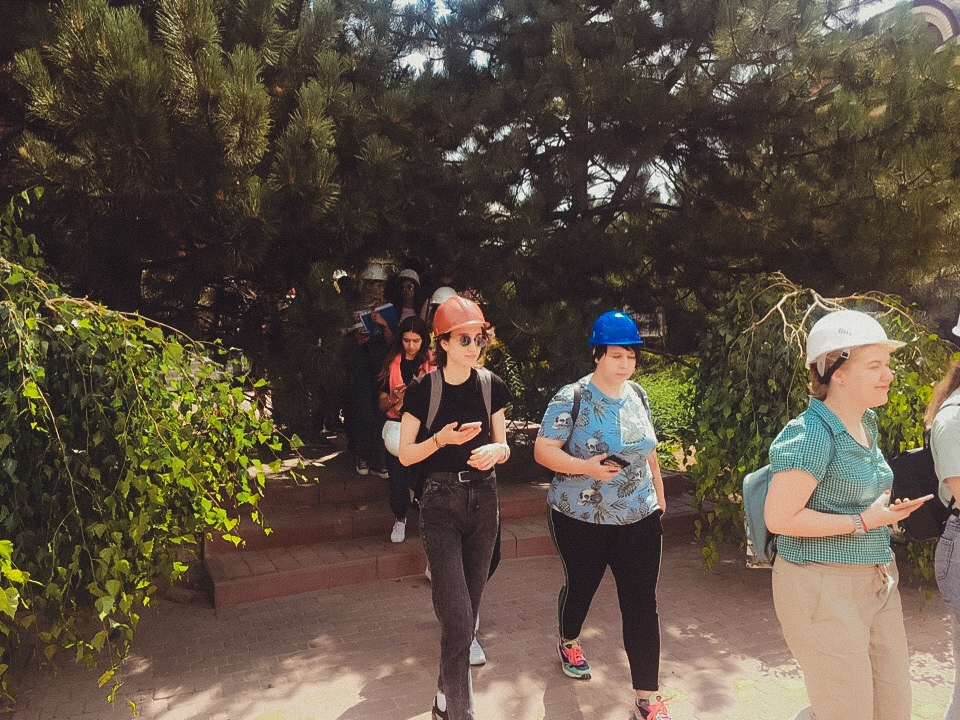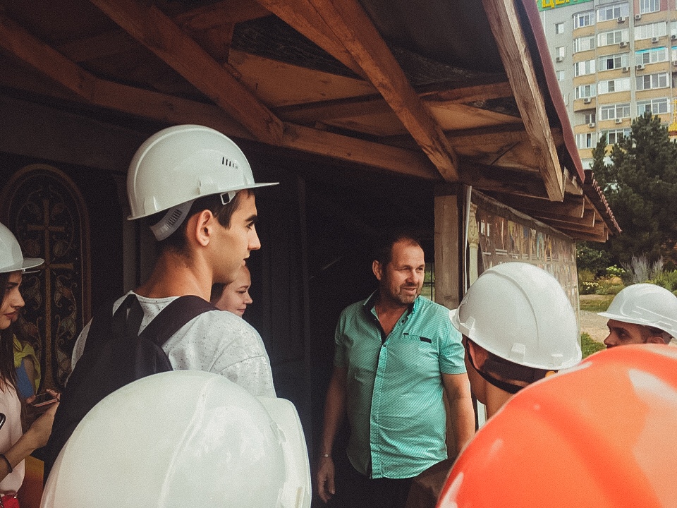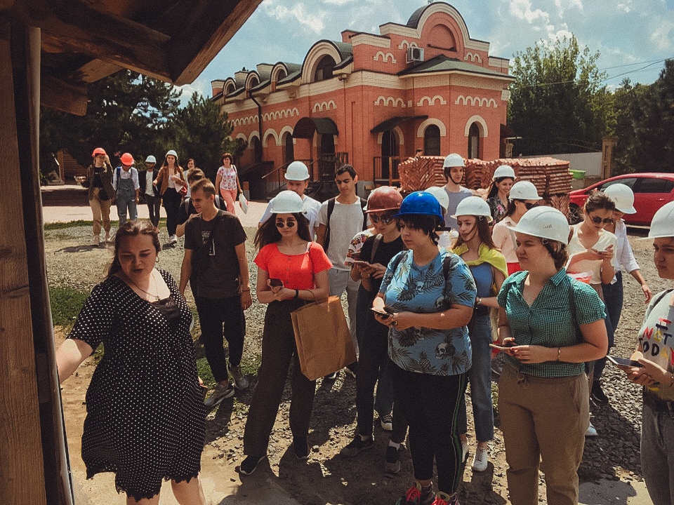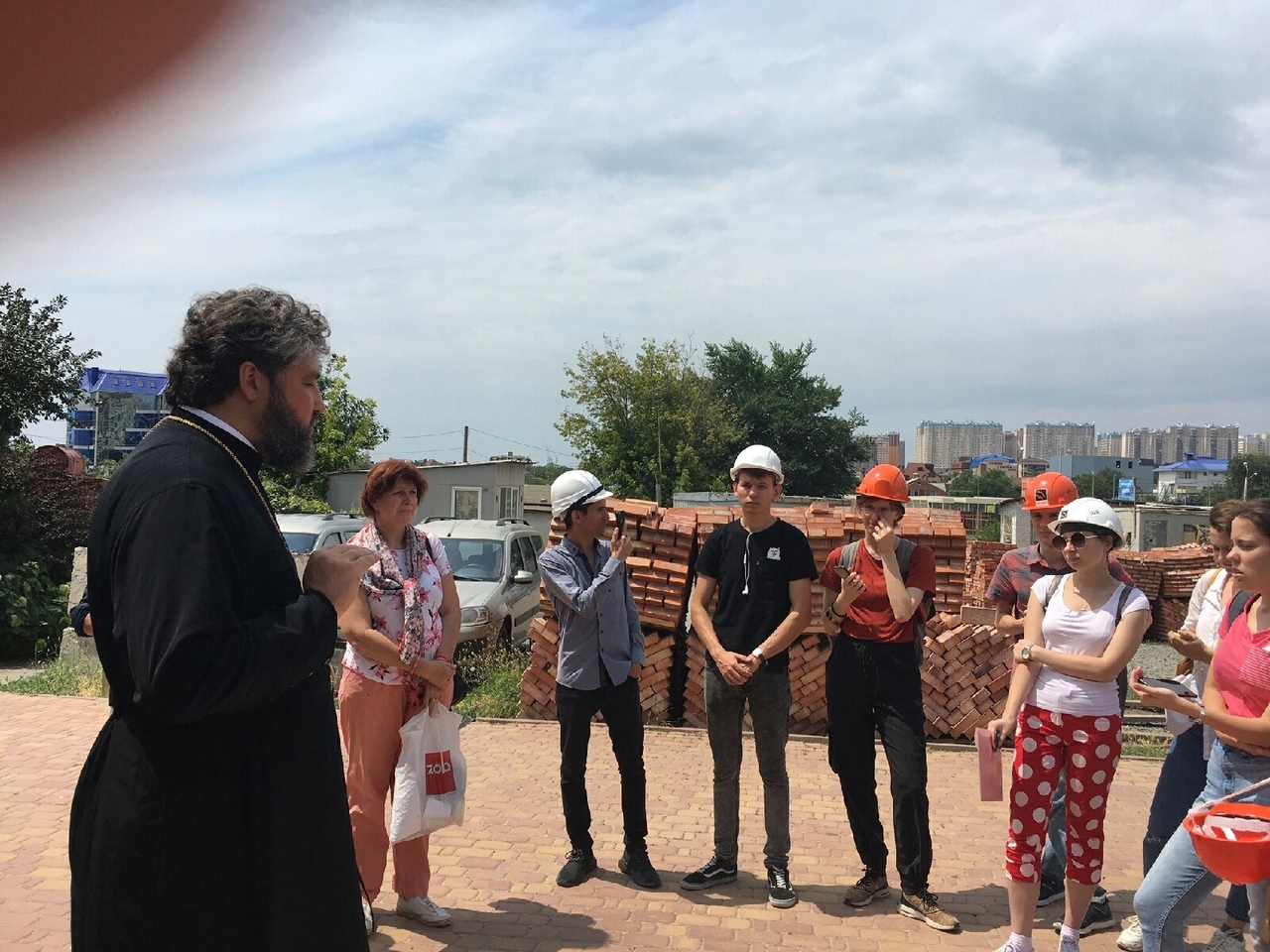 Кажется, наш приход - один из самых популярных туристических объектов на Западном: каждую неделю к нам приезжает как минимум одна экскурсионная группа. Сегодня, как можно догадаться по каскам, нашими гостями стали студенты Академии архитектуры и искусств ЮФУ.