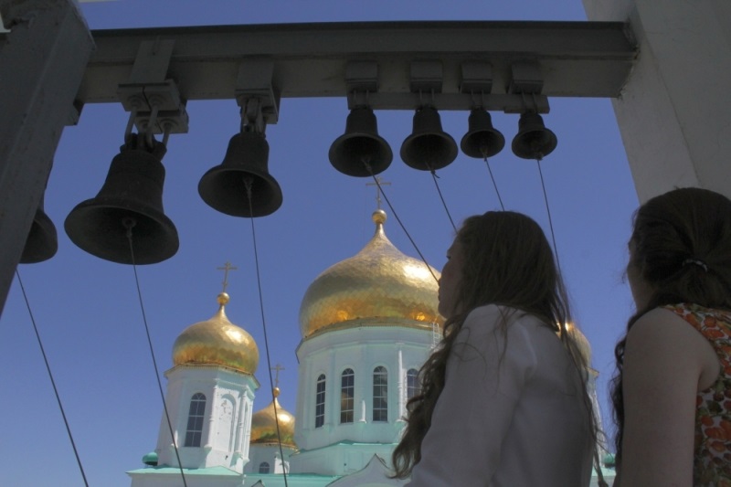 По пасхальной традиции гости собора поднялись на соборную колокольню, где звонари и любители колокольного звона молодежного клуба совершили Пасхальный трезвон, отметив особое звучание колоколов соборного храма.