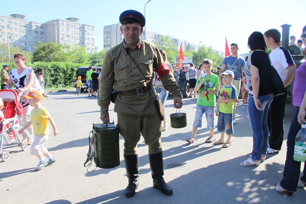 Донской военно-исторический музей, возглавляемый членом нашего центра Иваном Стреляевым, организовал передвижную выставку военной техники, вооружения и экипировки, которая была развернута в нескольких районах города Ростова–на-Дону. Для гостей выставки была устроена полевая кухня: все желающие смогли отведать настоящей солдатской каши.