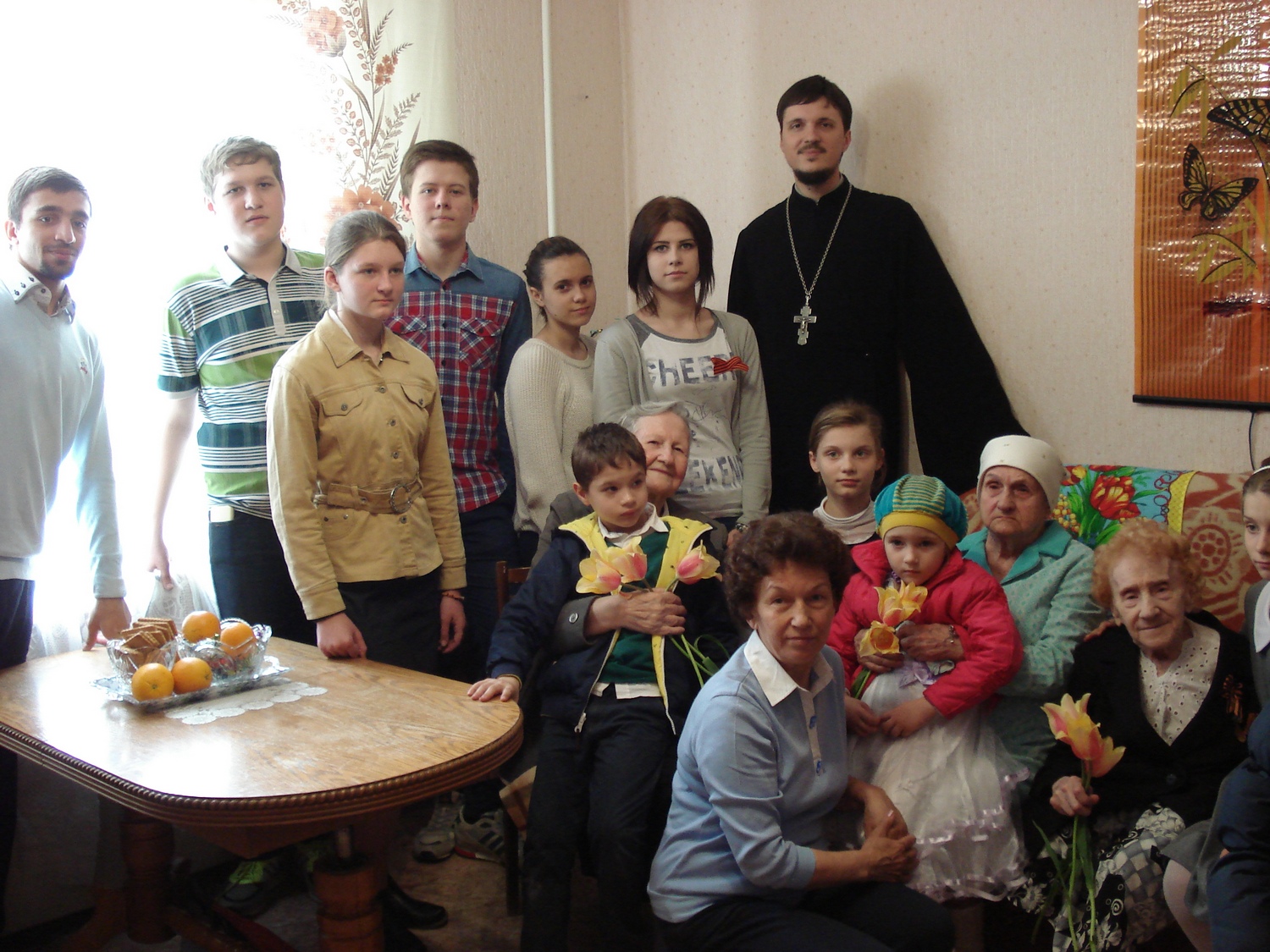 По благословению настоятеля прихода протоиерея Валерия Волощука накануне праздника 70-летия Победы молодежный клуб "Благо-Дать" прихода Святого Георгия Победоносца и прихожане храма Сергия Радонежского посетили ветеранов ВОВ и поздравили их с праздником!