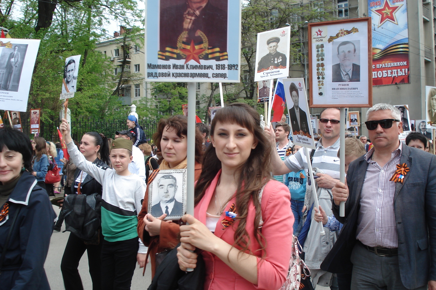 Почтение памяти ветеранов и участников войны, тружеников тыла, радость на лицах и слёзы, песни военных лет - это Бессмертный полк, собравший в этом году в Ростове-на-Дону более 80 тысяч человек. Они живут, пока мы помним.