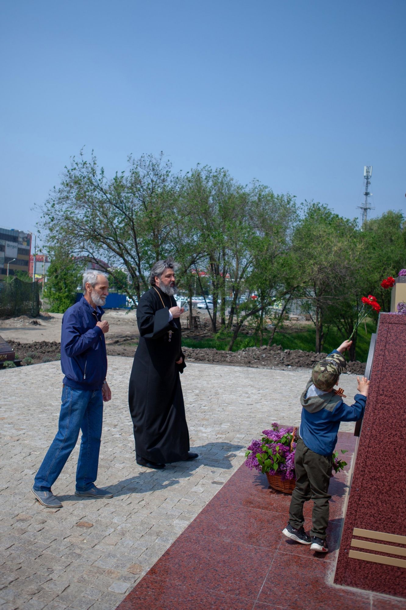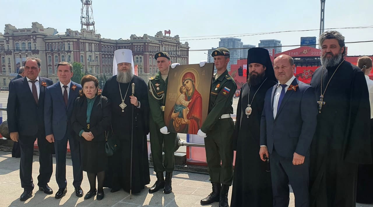 В День Победы настоятель нашего храма — Главного храма Южного военного округа благословил парадные расчёты перед их торжественным прохождением по Театральной площади.