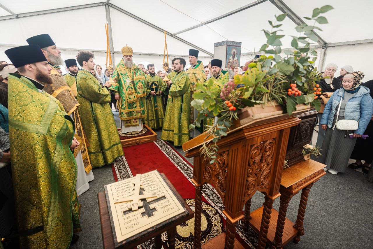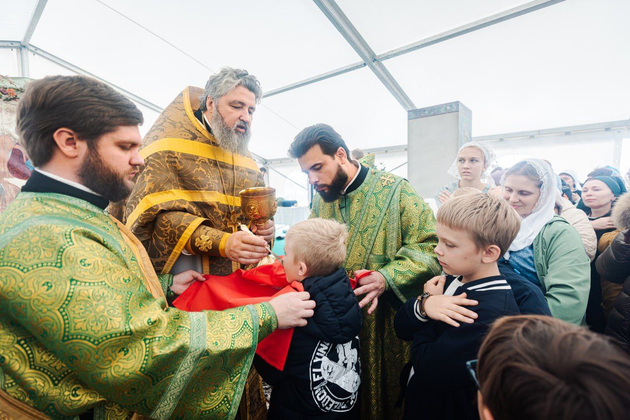 Первую Божественную литургию на стилобате строящегося храма в честь преподобного Сергия Радонежского совершил Глава Донской митрополии, митрополит Ростовский и Новочеркасский Меркурий.