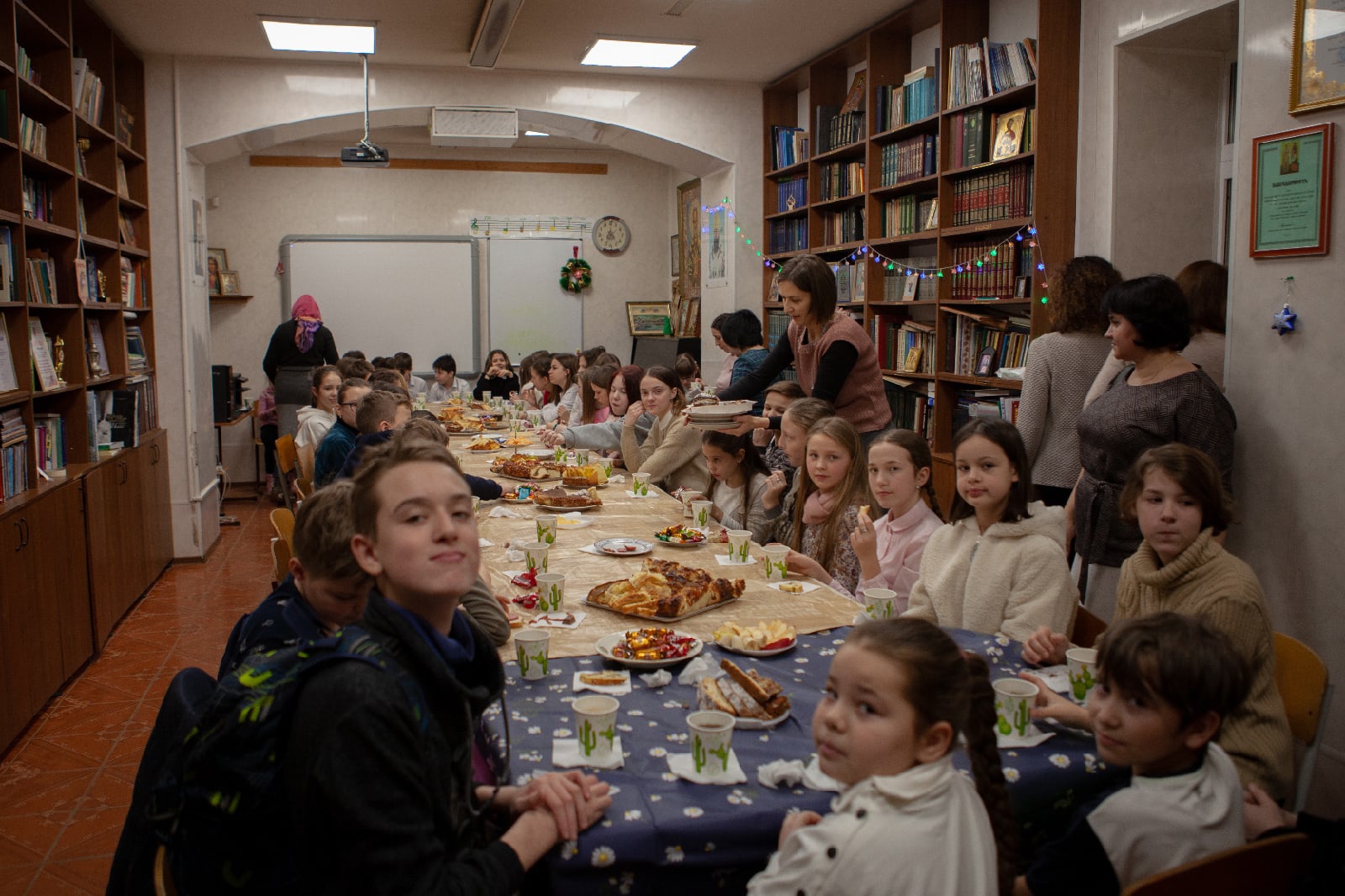 В старших группах тоже прошла Рождественская встреча! Слушая Евангелие о рождении Младенца Христа, исполняя колядки, играя в викторину, ребята и педагоги пытались ответить на главный вопрос: в чём суть праздника Рождества Христова? И переделанное послание апостола Павла, прочитанное педагогами, надеемся, заставило ребят задуматься о смысле этого праздника: