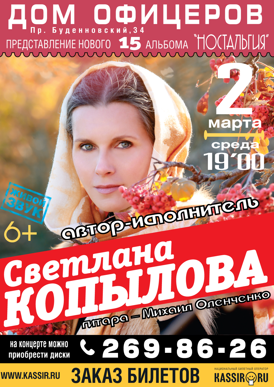 2 марта 2016 года в Ростове-на-Дону Светлана Копылова представит свой новый юбилейный альбом «НОСТАЛЬГИЯ».