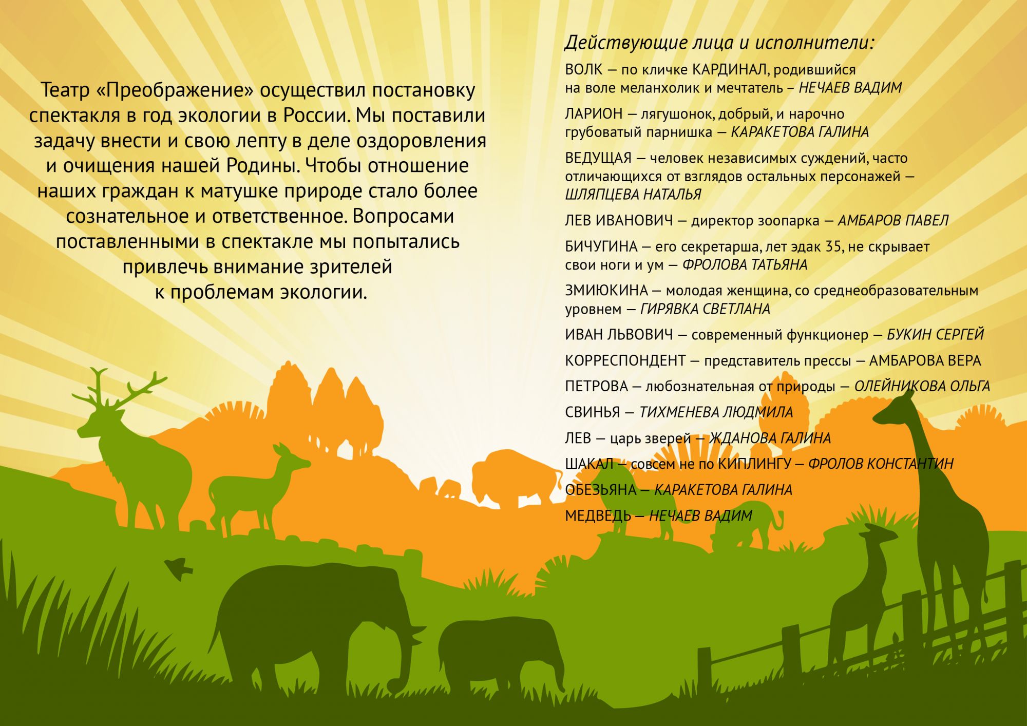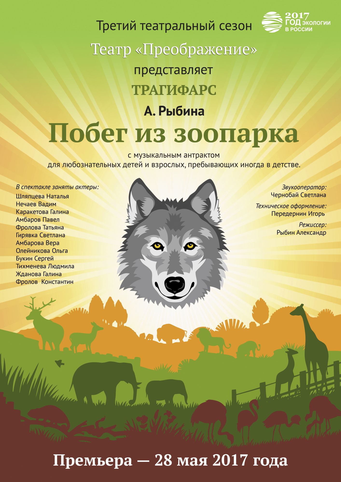 По окончании детского утренника состоится премьера спектакля «Побег из зоопарка», который подготовила взрослая труппа приходского театра «Преображение» под руководством А.С.Рыбина.