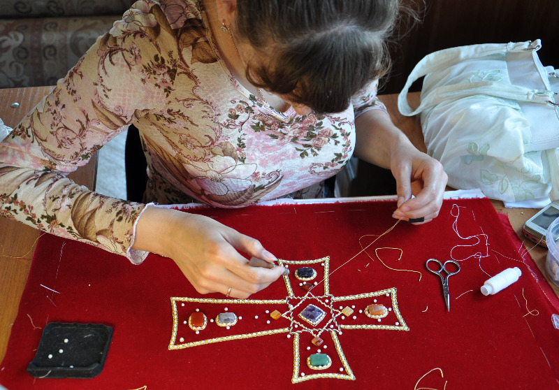вышивают такие работы, как воздуха, покровцы, хоругви, облачения,