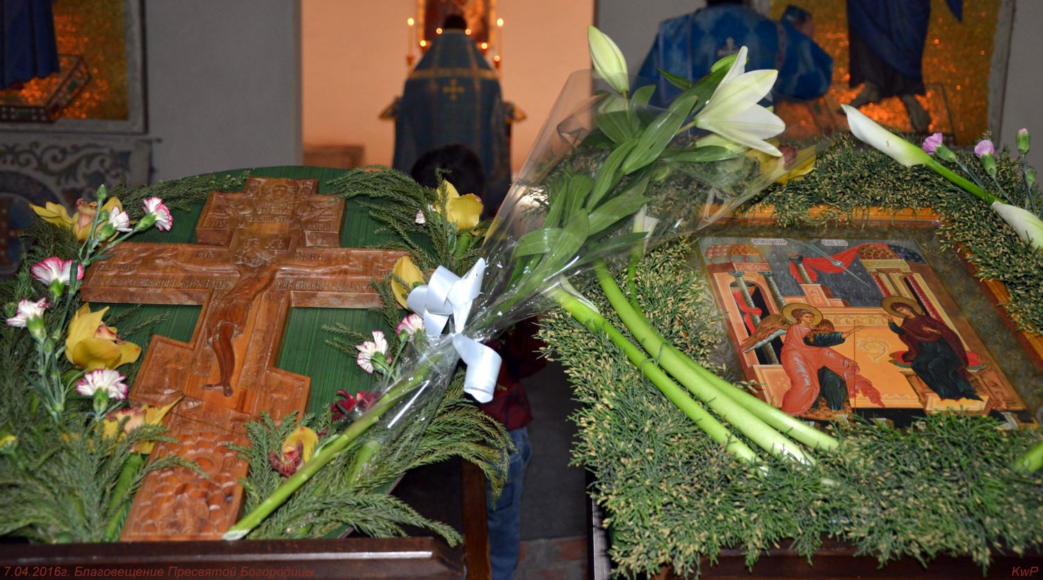 От имени прихода с праздником всех поздравил настоятель храма протоиерей Валерий Волощук. В проповеди он отметил, что принятие Богородицей Благовестия было спасительным для человечества. Как когда-то первая женщина, Ева, приняла слова змея и её решение оказало губительное действие на всё человечество, так и вторая Ева, Пресвятая Мария, своим согласием с волей Божией дала нам шанс на вечное бытие с Господом, на возвращение в Рай.