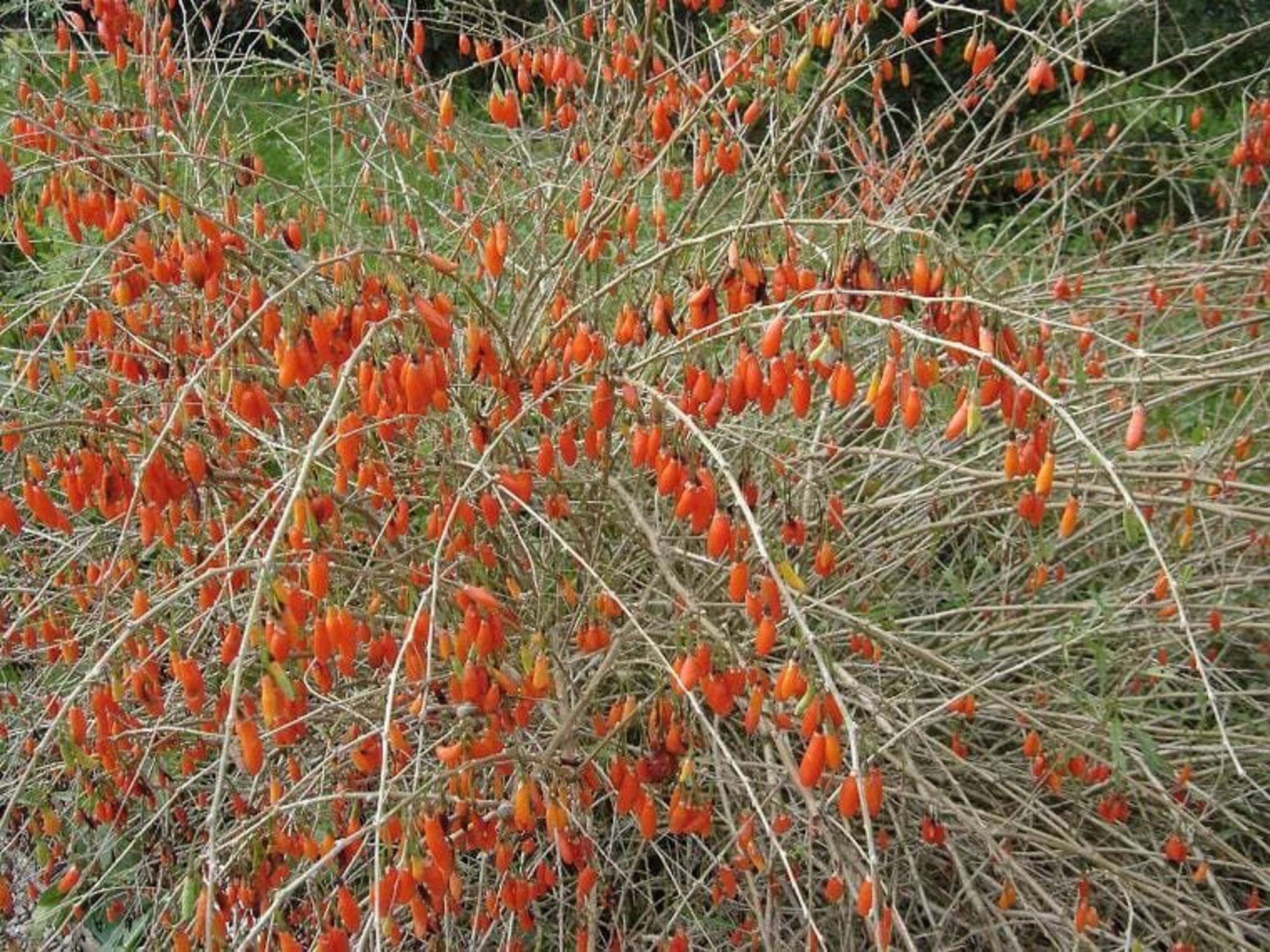 Описание: Многолетний колючий кустарник от 1 до 3 м в высоту. Листья простые, цельнокрайные, эллиптические. Цветки лилового (фиолетово-розового) цвета, колокольчатые. Растение плодоносит с июня по сентябрь. Плод — маленькая кораллово-красная ягода. На протяжении многих веков ягоды дерезы используются в традиционной азиатской медицине.