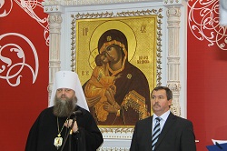 В конгрессно-выставочном центре "Вертол-Экспо" торжественно открылась третья Рождественская выставка-ярмарка "Дон Православный". На церемонии открытия присутствовал Глава Донской митрополии митрополит Ростовский и Новочеркасский Меркурий, который в своем выступлении благословил всех участников и устроителей этого мероприятия, отметил его высокую общественную значимость. Вместе с митрополитом выставку посетили епископ Шахтинский и Миллеровский Игнатий, епископ Волгодонский и Сальский Корнилий; заместитель Губернатора Ростовской области Сергей Бондарев, заместитель Губернатора РО Игорь Гуськов, министр культуры РО Александр Резванов, духовенство Донской митрополии. В мероприятии приняли участие и священнослужители прихода святого Георгия Победоносца во главе с настоятелем прихода, сопредседателем оргкомитета по подготовке выставки-ярмарки "Дон Православный" протоиереем Валерием Волощуком.