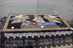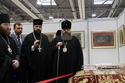 В этом году особое внимание гостей было обращено на экспозицию церковного искусства. Впервые в рамках выставки-ярмарки были представлены образцы золотошвейного мастерства, – как старинные, датированные XVI веком, так и современные, изготовленные ростовскими мастерами, антиминсы, иконы, богослужебные книги, и другие произведения церковного искусства. На экспозиции были широко представлены и творения мастеров Школы церковных искусств прихода святого Георгия Победоносца.