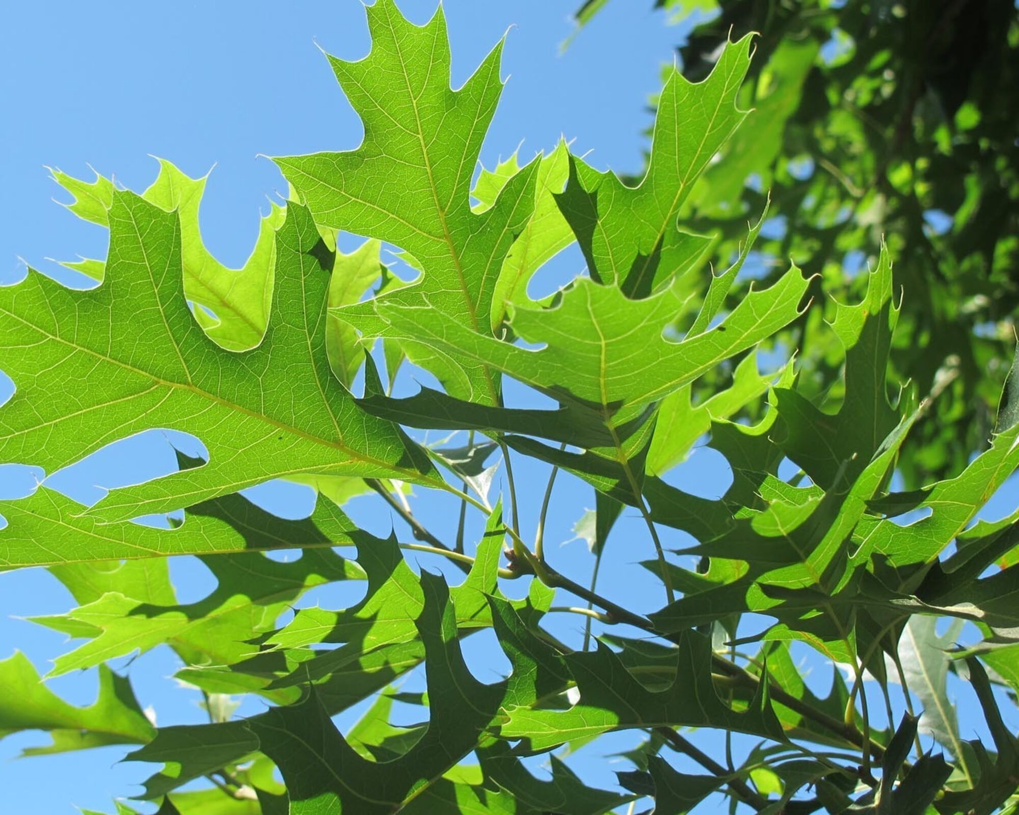 Описание: Крупное лиственное ветвящееся дерево высотой до 25м с пирамидальная кроной и зеленовато-коричневым гладким стволом. Живет до 120 лет. Листья длиной до 12 см, с пятью-семью глубоко вырезанными, почти до середины листа, зубчатыми лопастями, сверху ярко-зелёные, снизу светлее, с пучками волосков в уголках жилок. Осенью — ярко-пурпуровые. Характерной чертой, свойственной нескольким другим видам дуба, является сохранение красивых (от оранжевого до алого цвета) листьев на молодых деревьях в течение зимы. Это естественное явление, называемое марсценция. Прочная и долговечная древесина дуба используется для производства топлива и целлюлозы, а также для железнодорожных шпал и домашней мебели.
