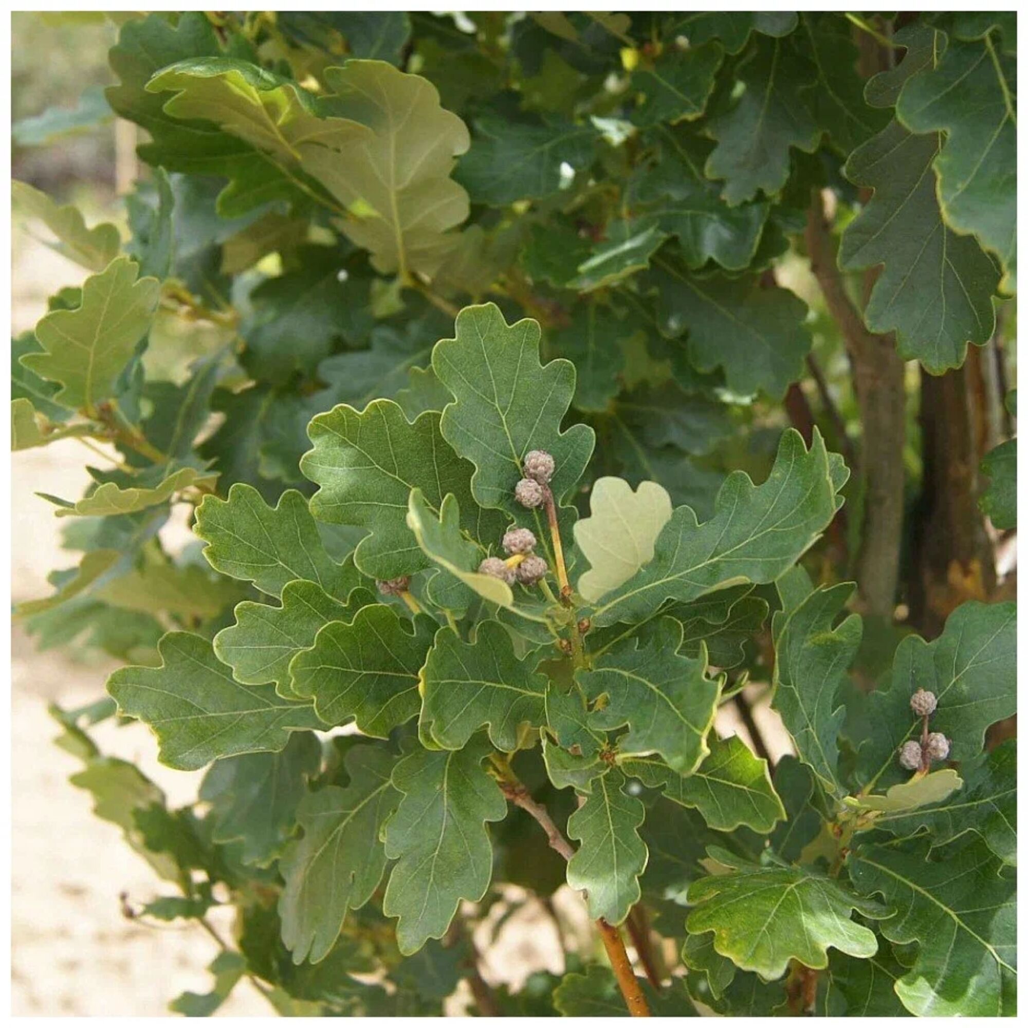 Описание: Крупное лиственное ветвящееся дерево высотой до 40м с огромной кроной и мощным стволом. Может прожить до 2000 лет. Название «черешчатый» этот вид получил за длинные плодоножки. Листья лопастные, продолговатые; плод – желудь. Ценный медонос. До 19 века чернила изготавливались из дубовых листьев. Прочная и долговечная древесина дуба издавна используется в судостроении, мебельной промышленности, при сооружении шахтных и гидротехнических сооружений. Из листьев получают краситель, кору используют в медицине.