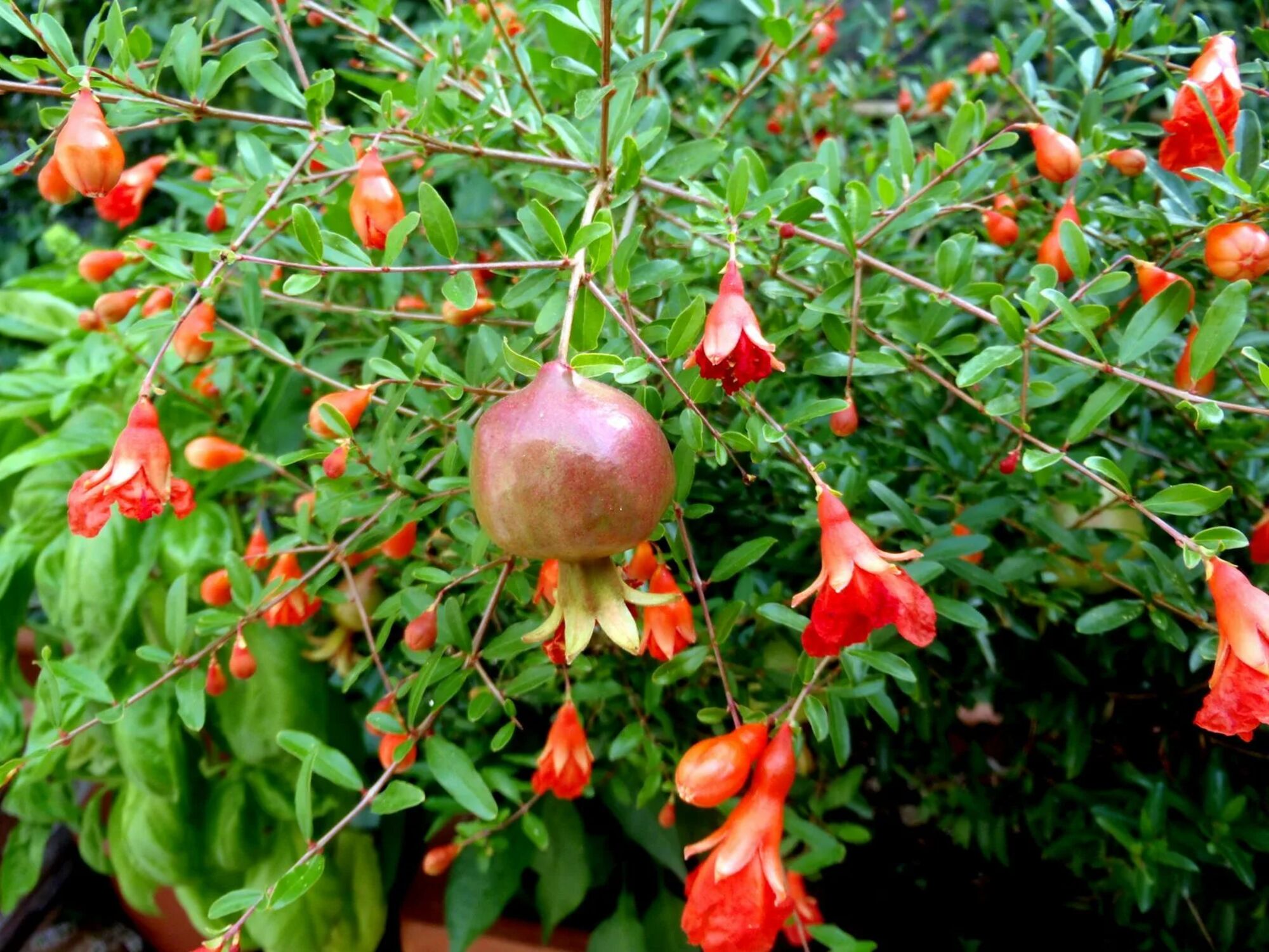 Описание: Род листопадных плодовых кустарников и деревьев высотой до 6м с глянцевыми листьями, оранжево-красными цветками и крупными шаровидными плодами с многочисленными семенами. Включает 2 вида. Русское название произошло от латинского granatus «зернистый». В Библии гибель гранатовых деревьев расценивается пророком Иоилем как Божье наказание, ведь они давали массу полезных для жизни и быта вещей. Их использовали в пищу, как лекарственное средство, из красивой, хорошо поддающейся обработке древесины делали разные поделки, украшающие быт. Изображения плодов граната украшали Иерусалимский храм и подол ризы первосвященника. Когда Соломон воспевает любимую женщину, также использует образ гранатовых яблок.