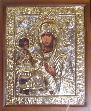 В 2006 году по благословению Владыки Пантелеимона группа священнослужителей и мирян Ростовской-на-Дону епархии, в которой был настоятель храма Иоанна Воина Отец Валерий, в паломнической поездке посетила Грецию. Особым событием этой поездки было посещение монастыря Хиландар на святой горе Афон, того самого, в котором и поныне пребывает святой образ Божией Матери «Троеручица». Здесь Отец Валерий приобрел копию чудотворной иконы для нашего храма. После всенощного бдения она была оставлена возле подлинника на ночь. После Божественной Литургии – торжественно освящена архиерейским чином.