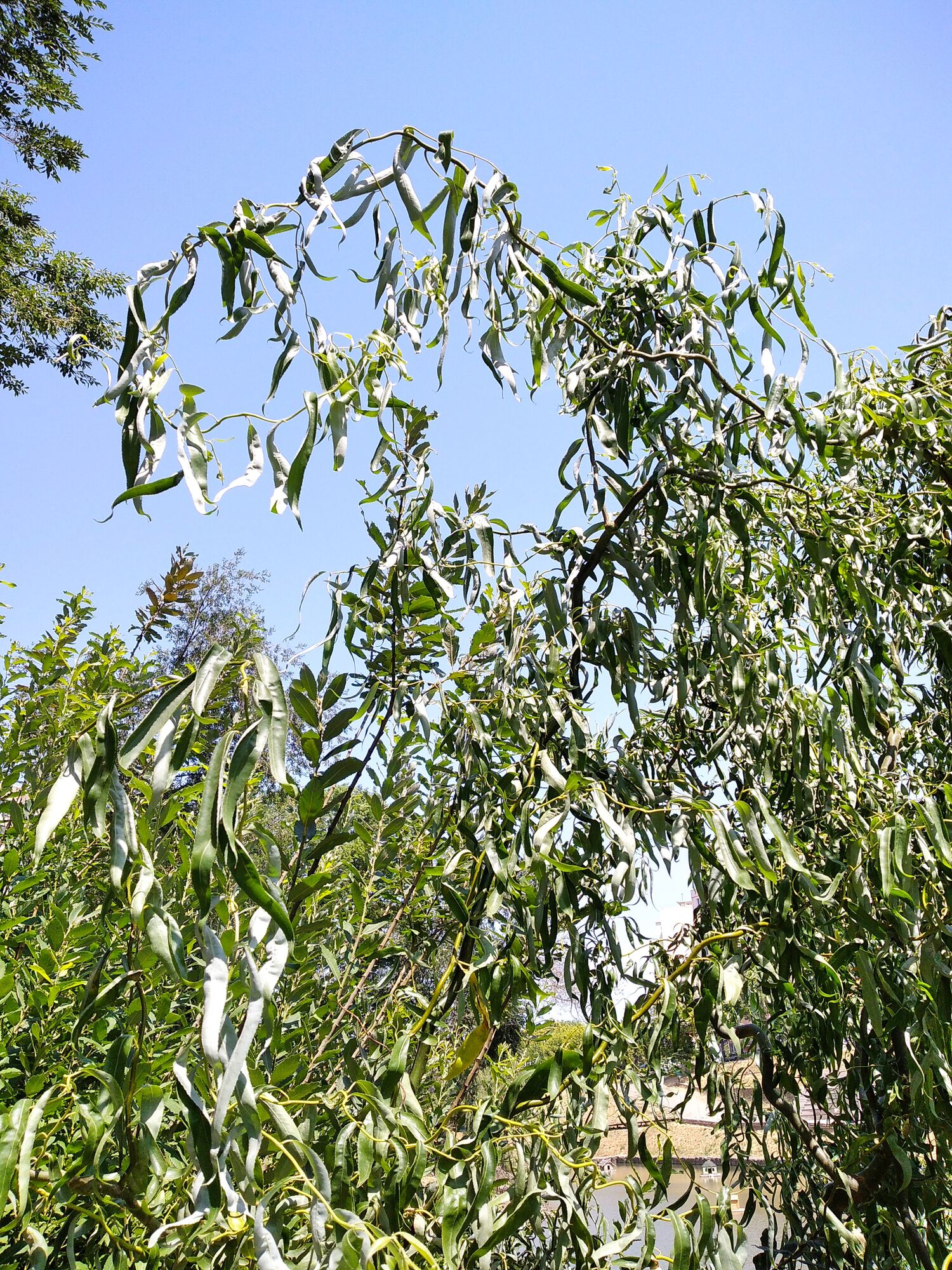 Описание: Кустарник или дерево высотой 3.5-13 м с изящными извилистыми ветвями. Молодые веточки имеют яркую желтовато - оливковую окраску. Те, что постарше ближе к коричнево - красному цвету. Листья у культуры имеют максимум 10 см в длину, по краям заострены. Нижний край листа имеет сизо-серый оттенок, а верхний окрашен в сочный зеленый. Способны закручиваться по спирали, придавая дереву удивительный и необычный вид.