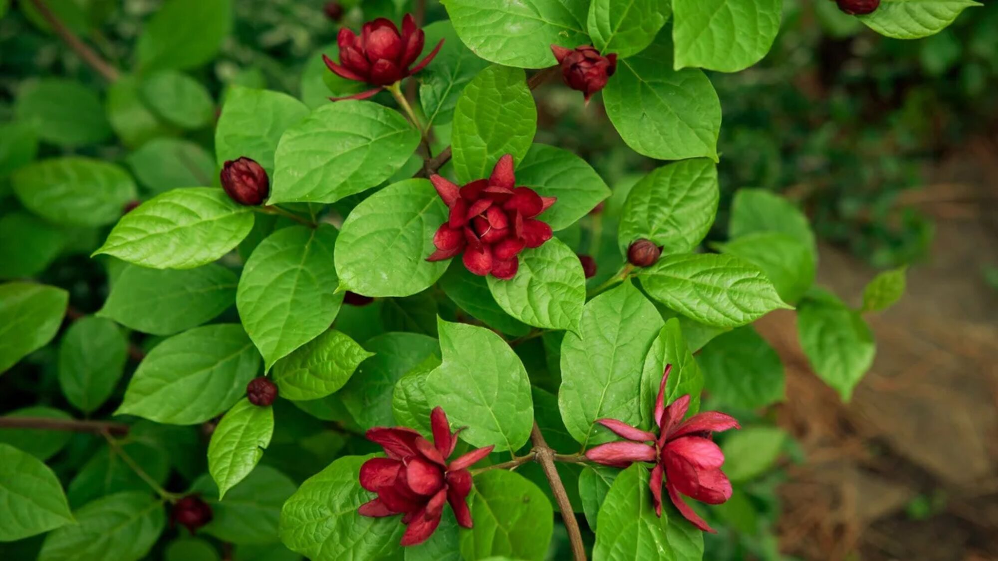 Описание: Декоративный листопадный кустарник с крупными бордовыми или розовыми цветками, напоминающими лотосы с невероятным запахом. Кусты зацветают уже в начале июня и продолжают радовать своим видом вплоть до осени. Приятный запах источают кора, древесина и листва каликантуса. Широко используется в парфюмерии.