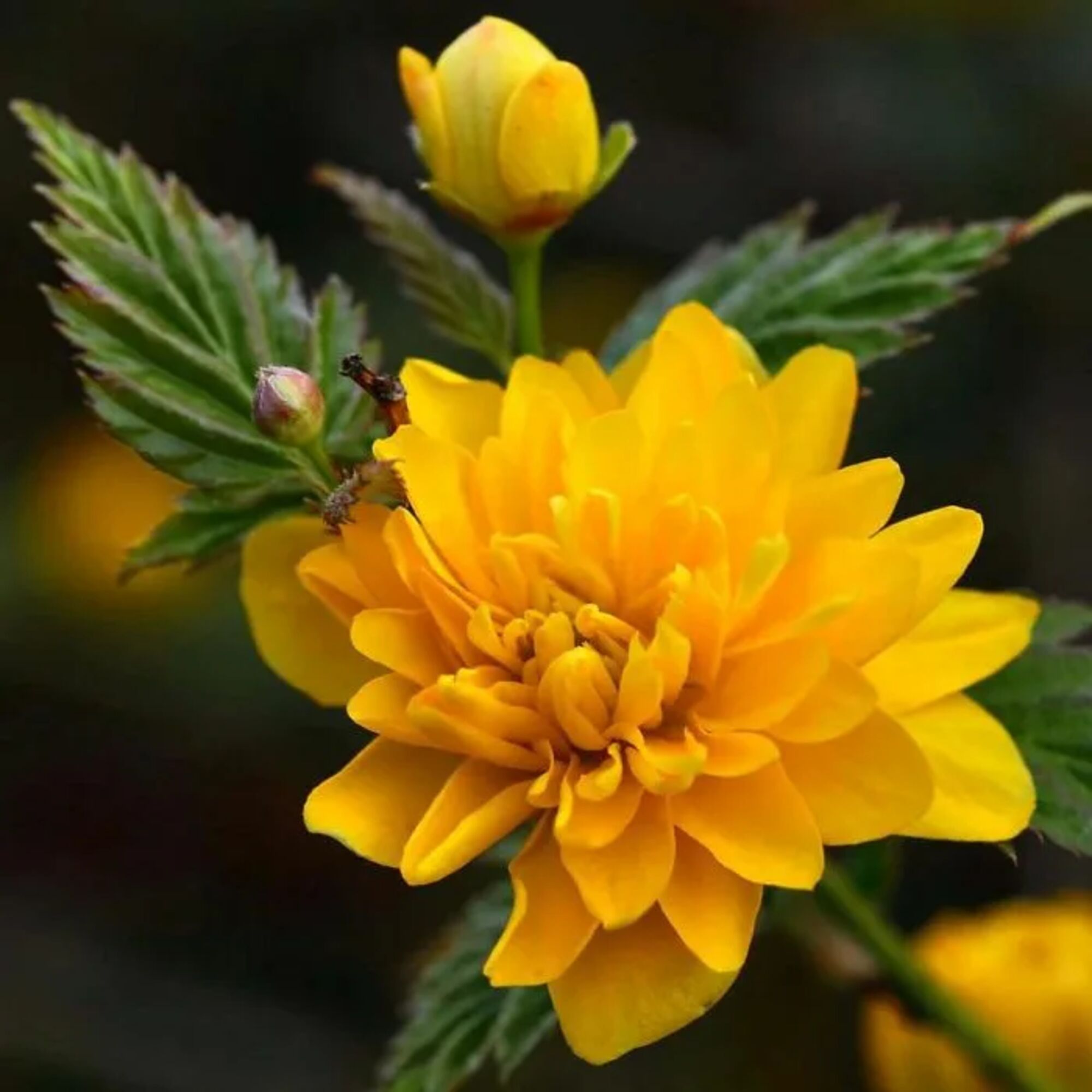 Описание: Листопадный кустарник, в естественных условиях растет на юге Китая и в горных областях Японии. Это растение обладает очень интересной и своеобразной формой цветка, похожей на форму цветка розы, поэтому керрию называют "пасхальной розой". Цветение продолжается почти до конца лета, а осенью керрия может зацвести второй раз. На побегах располагаются листья длиной около 10 см, напоминающие листья малины - зубчатые, с острыми кончиками. У них насыщенно-зеленый цвет летом, и ярко-желтый - в осенние месяцы.