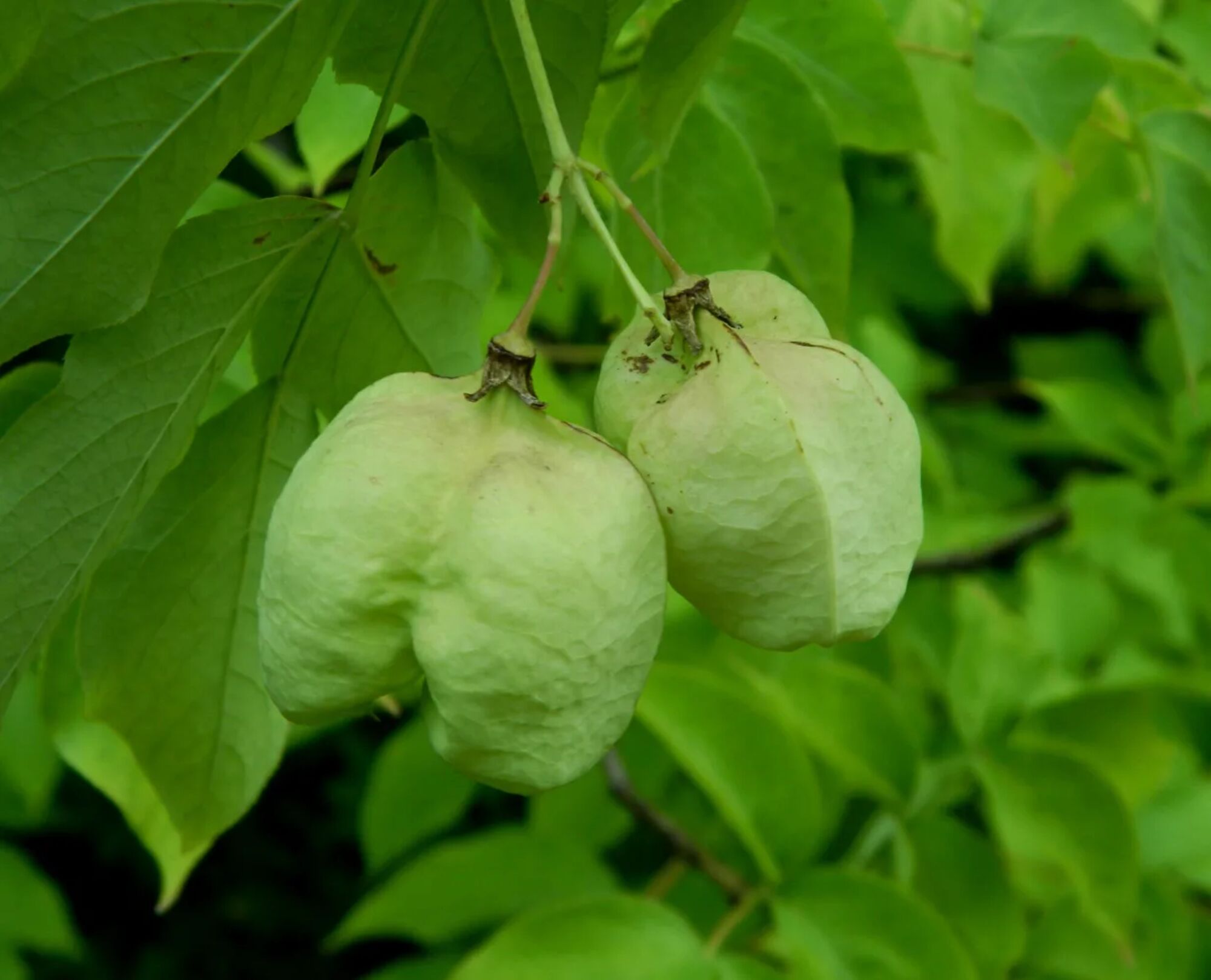 Описание: Кустообразное дерево от 2 до 5 м в высоту. Прочный пряморастущий стебель вначале имеет зеленый окрас, но со временем становится тёмно-коричневым с белесыми крапинками и штрихами. Светло-зеленые листья имеют перисто-сложное строение: одна листовая пластина состоит из 4-7 небольших листочков с заострёнными краями и чётким жилкованием. Цветет с конца весны в течение трех недель. Грозди белоснежных цветов напоминают грозди винограда. Цветки источают нежный аромат и привлекают пчел. Хороший медонос. Плоды похожи на трехгранные коробочки с острой вершиной с одной стороны. Если их потрясти, раздается звон, как из погремушек. Один из специфических продуктов грузинской кухни. Используется в народной медицине.