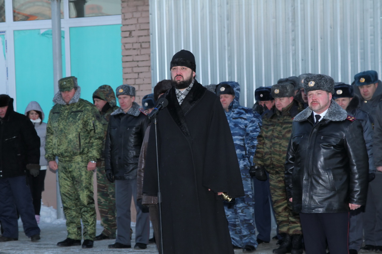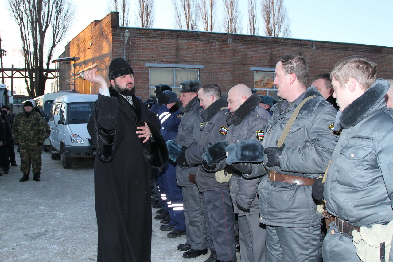 Протоиерей Валерий Волощук провел молебен и благословил служащих сводного отряда на благополучное выполнение возложенных на них обязанностей.