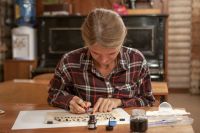 Чуть больше месяца назад у нас открылась студия красивого письма. Обучает основам каллиграфии Георгий Дудко