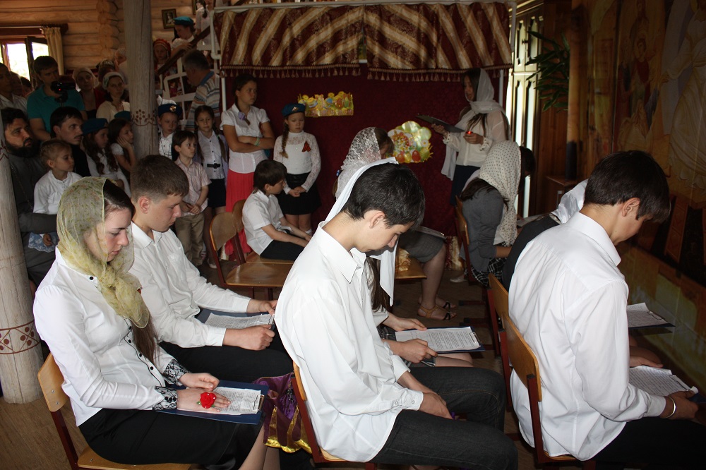 12 мая 2013 года на приходе святого Георгия Победоносца прошёл праздничный пасхальный утренник для учащихся Воскресной школы. Утренник открылся сценкой "Куда мы катимся?", подготовленной театральной мастерской молодежного клуба "Благо-Дать". Затем ученики младшей группы школы под руководством педагога Валентины Шабеко разыграли для гостей кукольный спектакль "Когда наступит Пасха". В конце утренника дети исполнили пасхальные песнопения, песни военных лет, народные танцы. Концертная программа была подготовлена учениками совместно с музыкальным руководителем Ириной Бухтовой. Настоятель прихода отец Валерий поздравил детей и их родителей со Светлым Христовым Воскресением, поблагодарил преподователей, и вручил всем учащимся школы подарки.