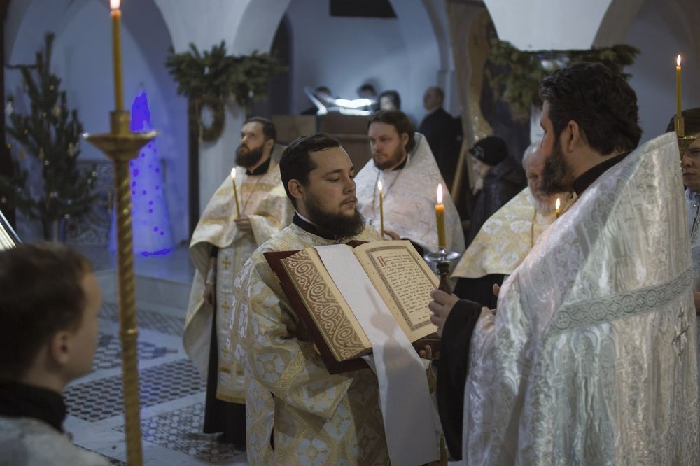 Чтение Евангелия во время всенощного бдения в храме Сорока Севастийских мучеников нашего прихода