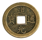 Китайские монеты с квадратным отверстием в центре и четырьмя иероглифами