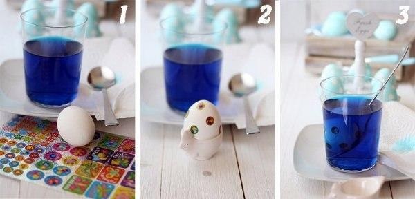 Материалы: Краски для яицКруглые наклейкиИнструкция: