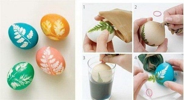 Материалы: Краски для яицЖивые листьяКапроновые колготкиИнструкция: