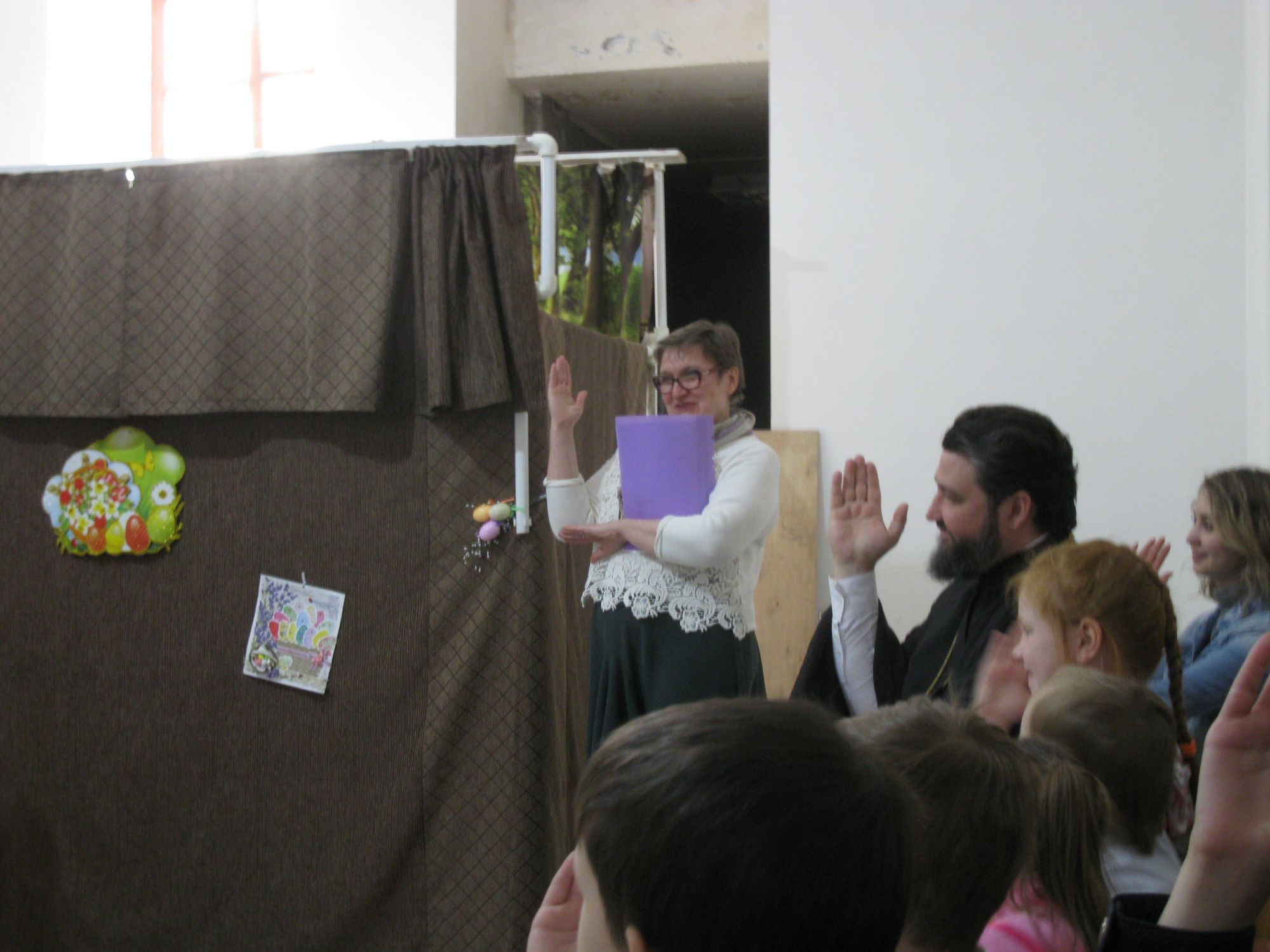 В конце всех ребят ждал кукольный спектакль, подготовленный учениками воскресной школы нашего прихода, в нём рассказывалось о девочке Маше, отправившейся в храм освятить колобок и о её приключениях, о помощи Божией в её благом начинании. Все ребята и родители получили замечательные подарки от настоятеля храма.
