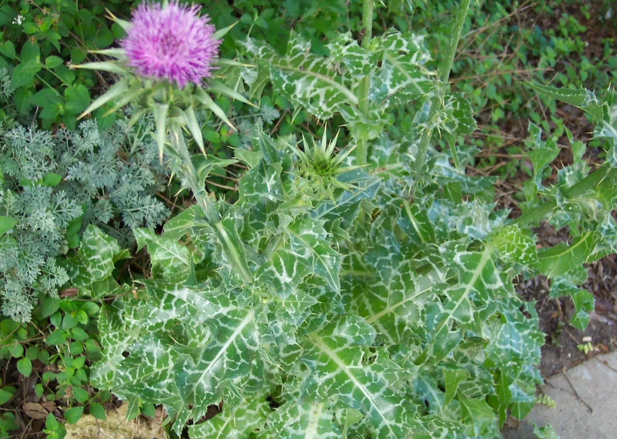 Описание: Однолетнее (в культуре) или двулетнее чрезвычайно колючее лекарственное растение высотой 1—1.5 м. Очень необычные листья: пластинка листа зеленая, а на ней белые пятна, продолговатые разводы. Плод-семянка с хохолком, летучий, пятнистый. Семена содержат силимарин — комплекс мощных природных антиоксидантов. Их используют для профилактики и лечения заболеваний печени, жёлчного пузыря, жёлчных путей и многих других. Из семян расторопши делают препарат Карсил. А также продают размолотые семена в виде таблеток.
