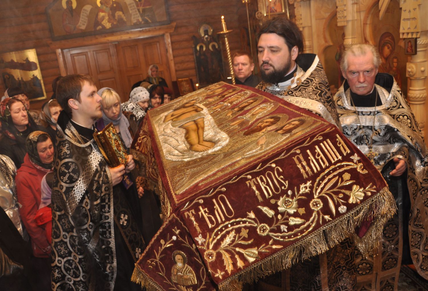 .jpg) Плащаница 19 века, подарок нашему Храму