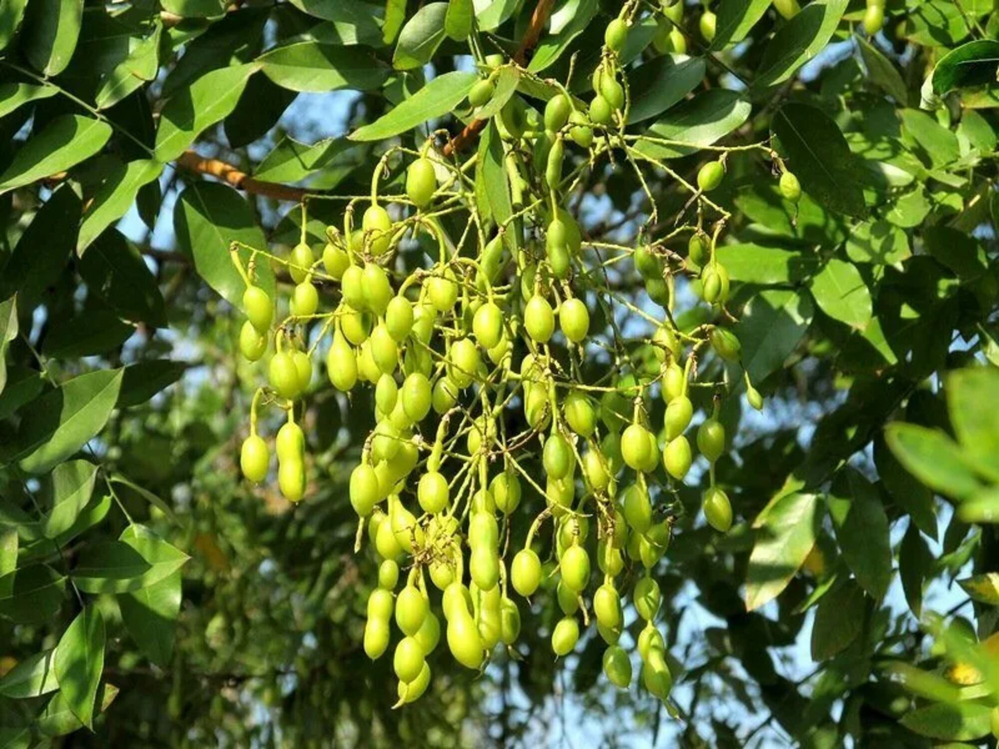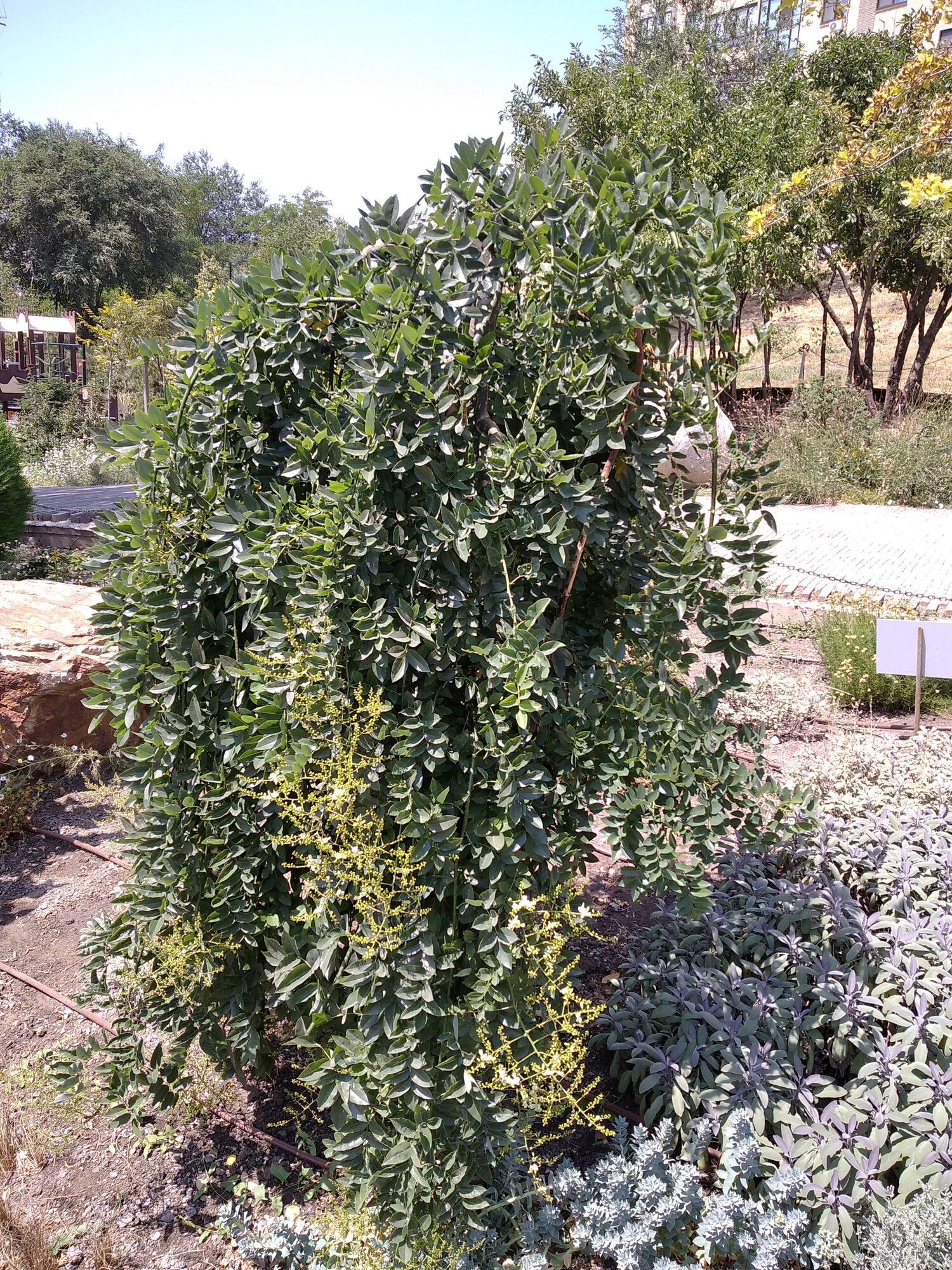Описание: Листопадное дерево с широкой кроной, высотой 25 м. Кора на старых стволах тёмно-серая с трещинами. Молодые ветви зелёные, без колючек. Цветы белые или желтоватые, ароматные, собраны в крупные рыхлые метёлки до 50 см длиной. Один из самых лучших медоносов. Цветет в течение 1,5 месяцев в июле – августе, сразу после липы, что для пчеловодства крайне важно. После цветения на кончиках ветвей появляются семенные коробочки. Стручки отличаются необычностью и привлекательностью, достигая 20 см в длину. Внешне напоминают нитки бусин. Поздней осенью ими лакомятся перелетающие на юг через Ростов свиристели. Бутоны и незрелые плоды софоры собирают для лечения сердечно-сосудистой системы и авитаминозов, наружно ее применяют как ранозаживляющее средство, при ожогах, язвах и других кожных поражениях.