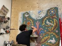 Мозаичисты мастерской Романа Лебедева заканчивают делать потолки для входа в храм 40 Севастийских мучеников