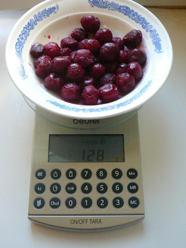Так как сезон вишни пока еще на подходе, я взяла замороженную вишню. С супом из свежей, конечно, не сравнится. Если берете свежую - тщательно ее промываете, заливаете слегка подсоленной холодной водой на 5-10 минут. Затем высушиваете и удаляете косточки. После этого должно остаться примерно 120-130 грамм мякоти.