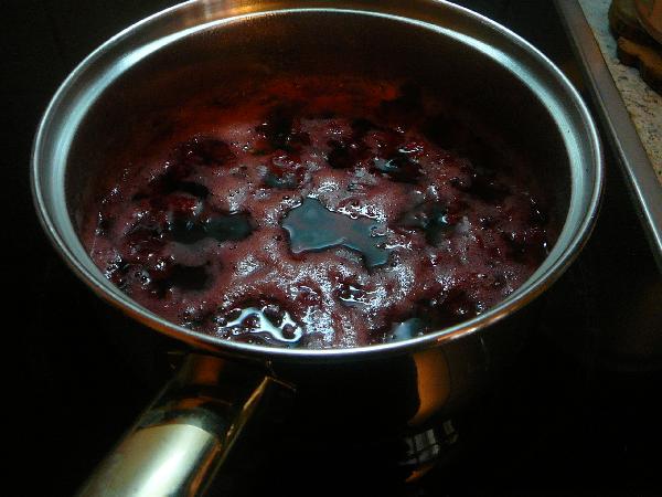 Залить вишню примерно 380 мл воды. Довести до кипения и варить на небольшом огне минут 15.