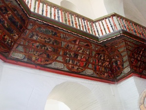 Хоры. В 1775 году кругом, у всех стен храма, были сооружены и расписаны хоры, наподобие Киево-Успенским Лаврским, обнесённые вокруг балясами. Снизу они были расписаны. Все сюжеты делятся на две части: композиции Ветхого завета и Нового (евангельские) и, скорей всего, написаны двумя художниками. Ветхозаветные композиции заключены в барочный орнамент, близкий к квадрату, евангельские вписаны в орнамент, имеющий характер круга.